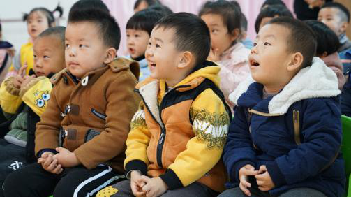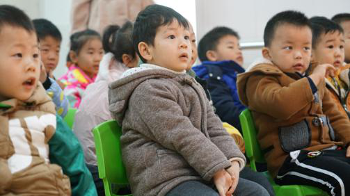 小寶寶們排排坐,聽志愿者上課。
