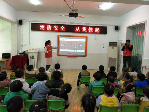 志愿者們根據(jù)幼兒年齡小、理解能力較弱的特點(diǎn),利用卡通圖片及簡潔易懂的小兒歌,就火災(zāi)的危害性、119報(bào)警注意事項(xiàng)、疏散逃生要點(diǎn)及滅火器使用方法等消防安全常識(shí)進(jìn)行了詳細(xì)講解。
