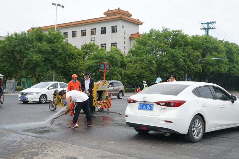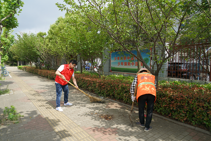 與環(huán)衛(wèi)師傅們一起清掃街道