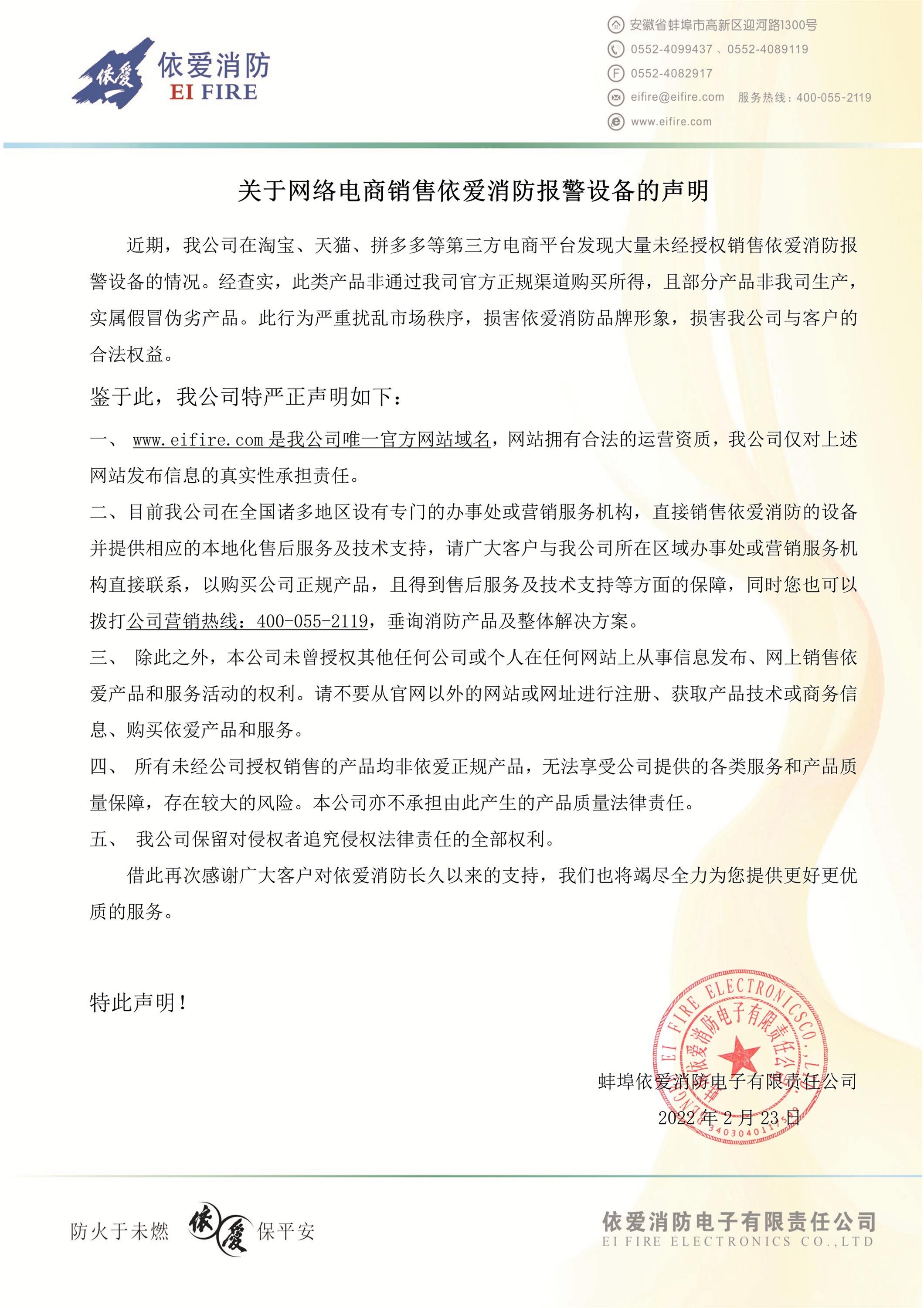 重要通知!關(guān)于網(wǎng)絡(luò)電商銷售依愛消防報(bào)警設(shè)備的聲明