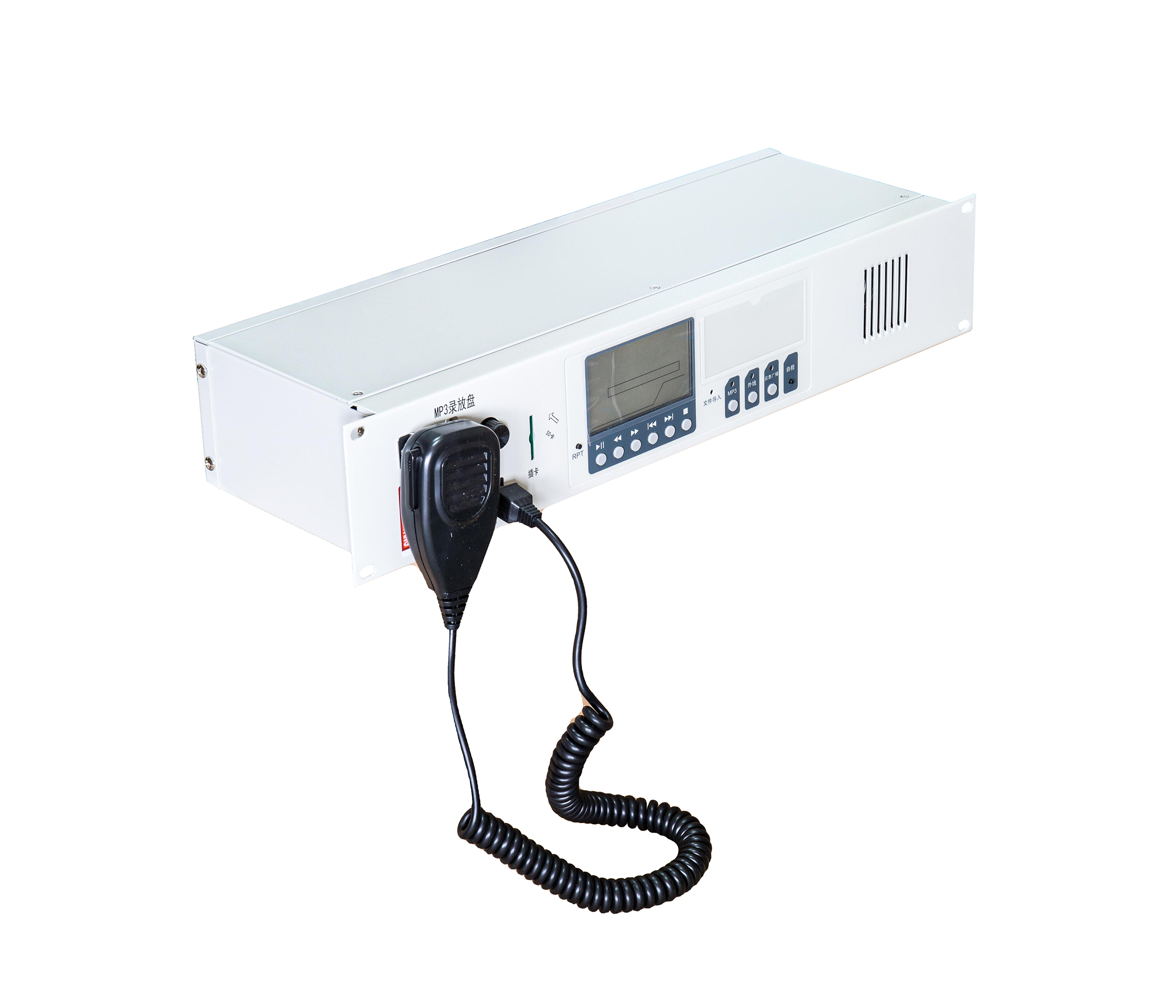 具有應(yīng)急廣播、話筒、MP3、外線四種播音方式。四種音源可獨(dú)立開關(guān)。